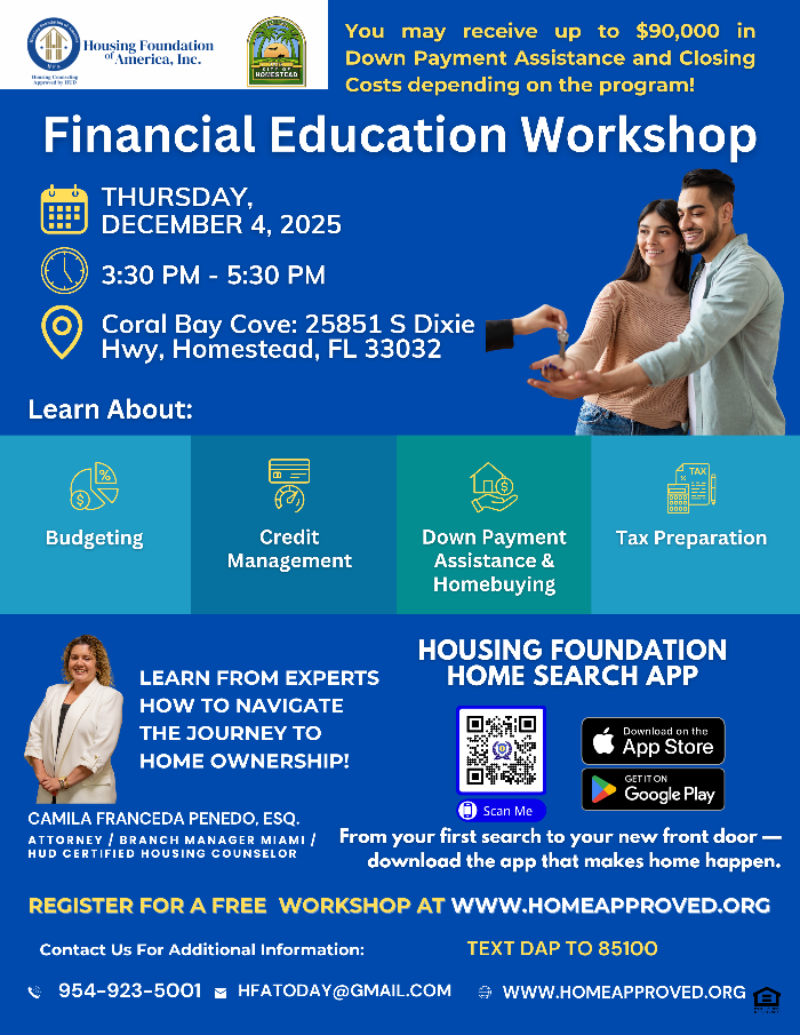 🏠Housing Foundation of America, Inc. is excited to invite you to an empowering ✨Financial Education Workshop✨ designed to help you take control of your financial future. Whether you're preparing to buy a home, improve your credit, or simply want to manage your money more effectively, this workshop is for you! ⬇️